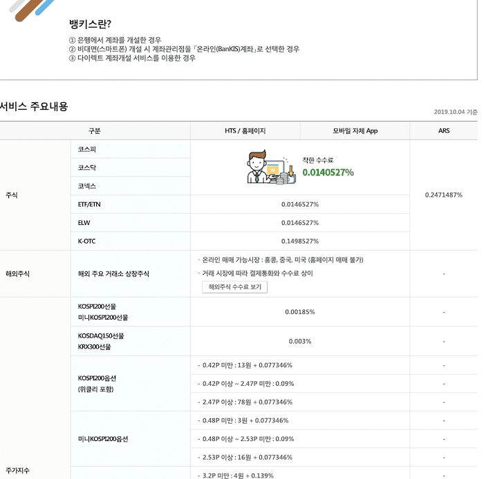 뱅키스, 한국투자증권 영업점을 선택할 수 있습니다. 온라인 (BanKIS)을 선택하길 권합니다. 주식거래 수수료라도 관리점이 뱅키스 인지 또는 영업점인지에 따라 수수료가 상이합니다. 한국투자증권은 뱅키스 관리점 기반의 계좌 + 스마트폰 거래에 대해 낮은 매매수수료를 제공합니다.